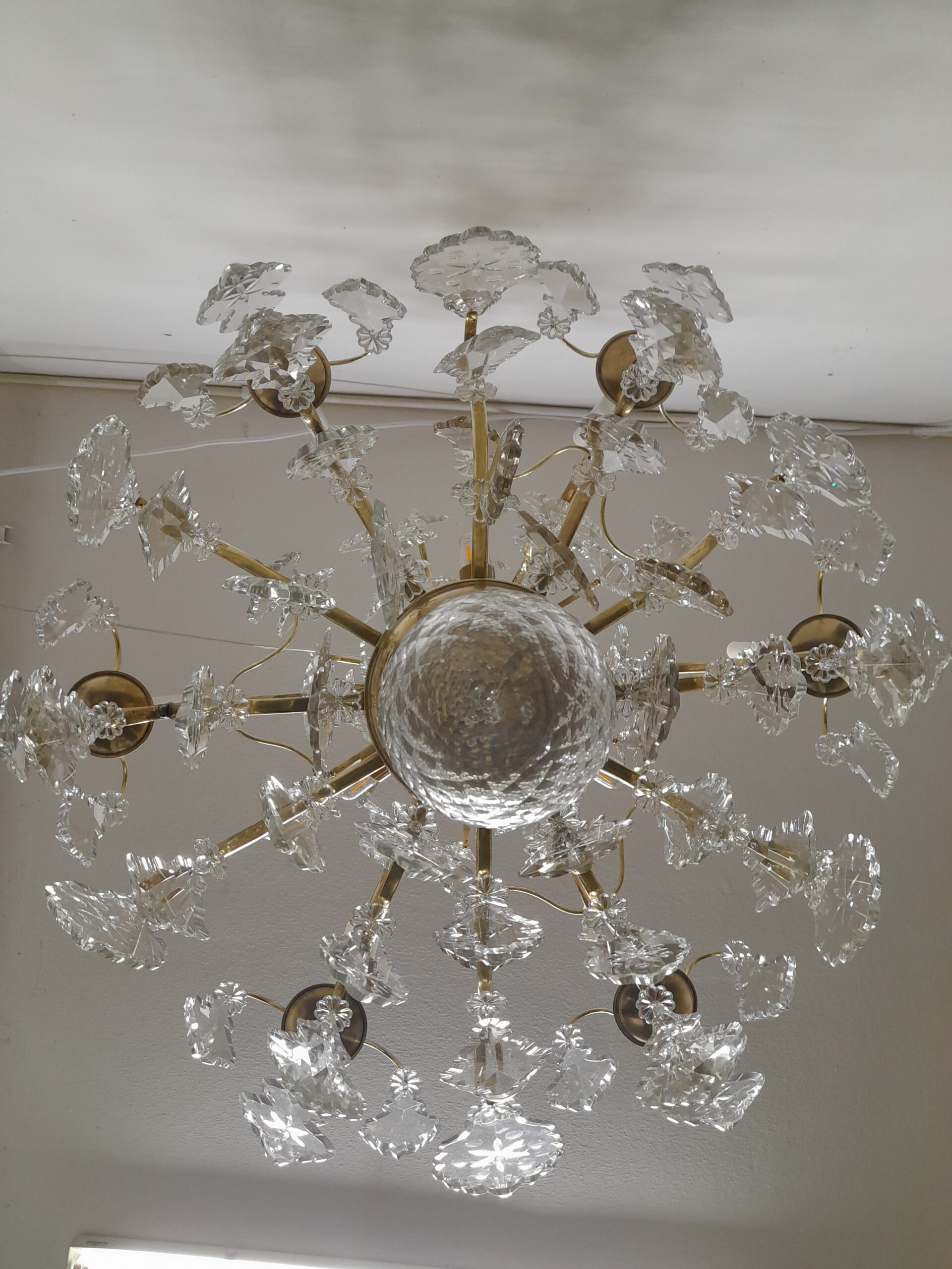 Kronan är rikligt behängd med klara löv prismor där vissa är graverade.