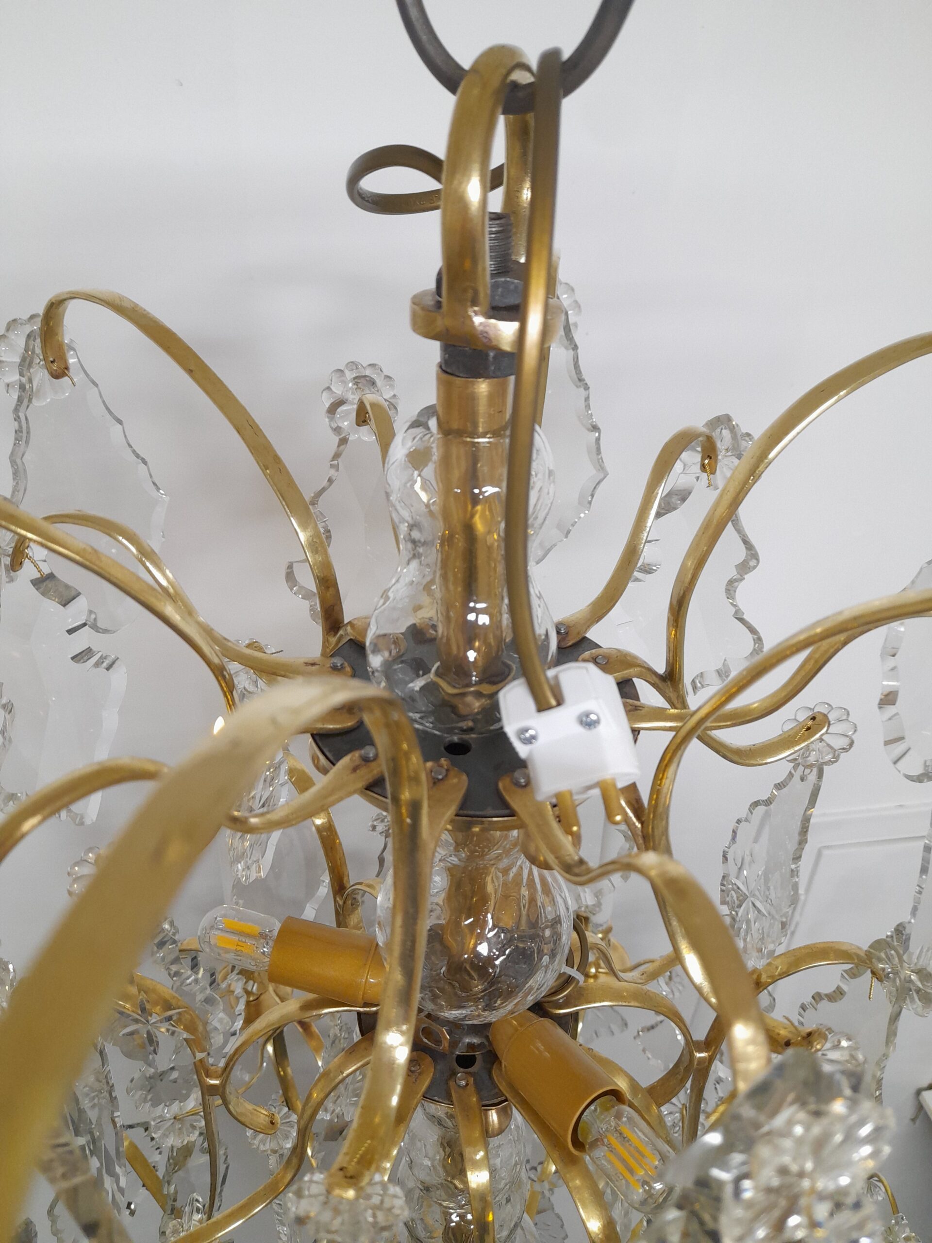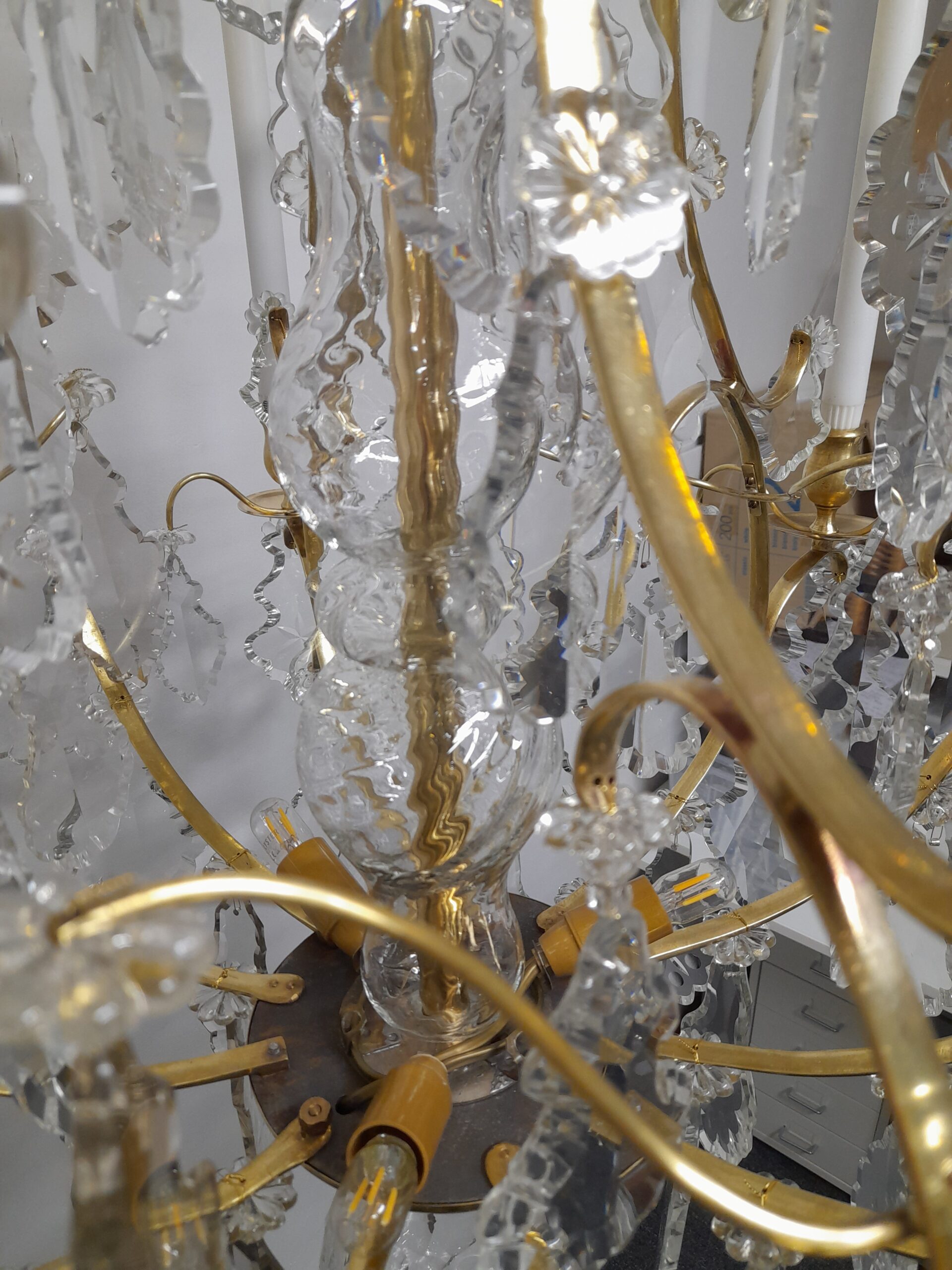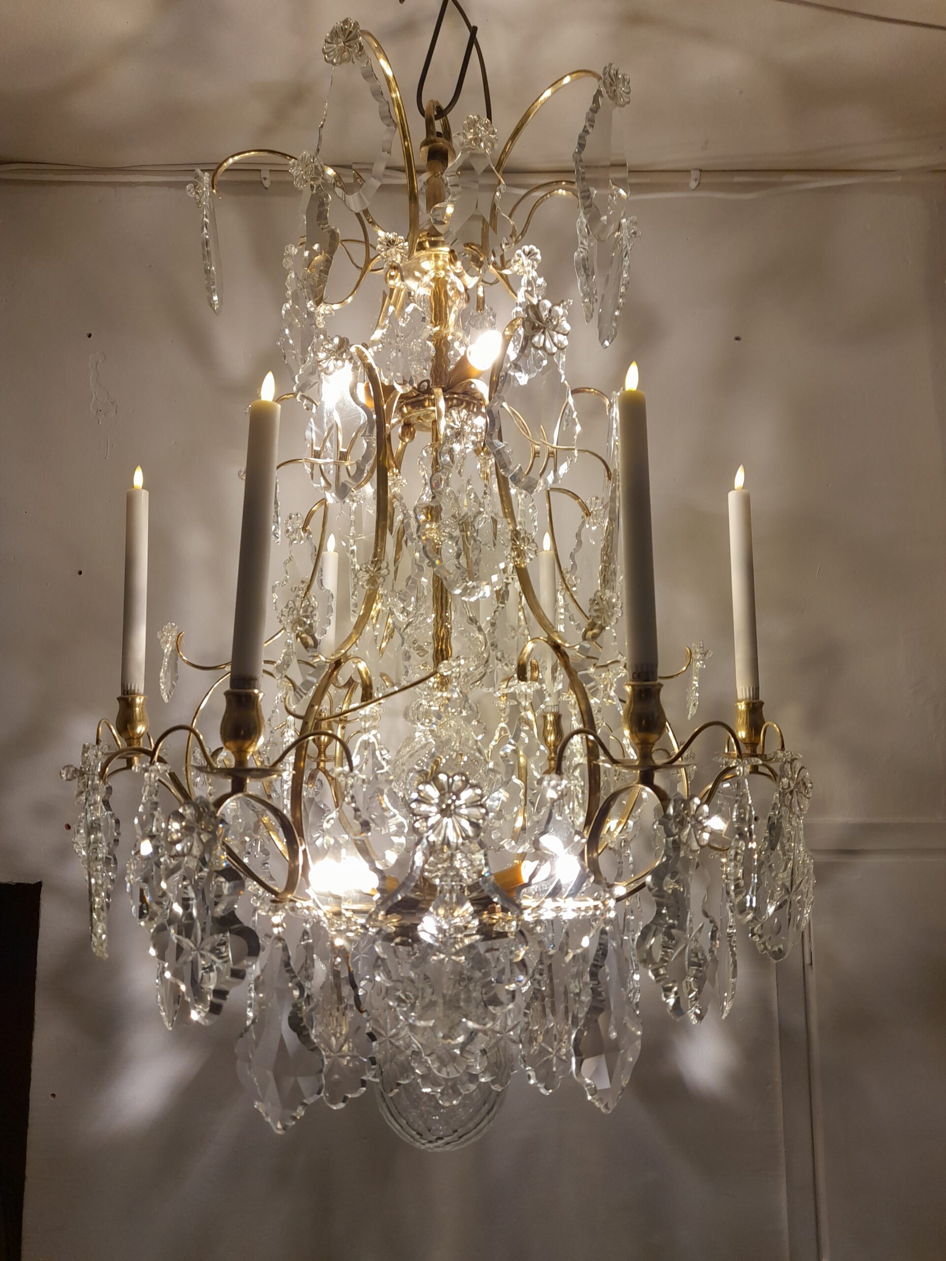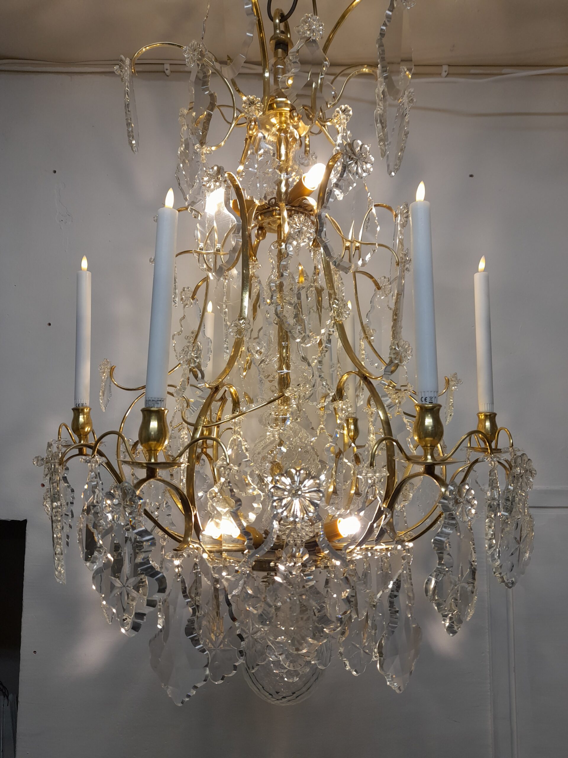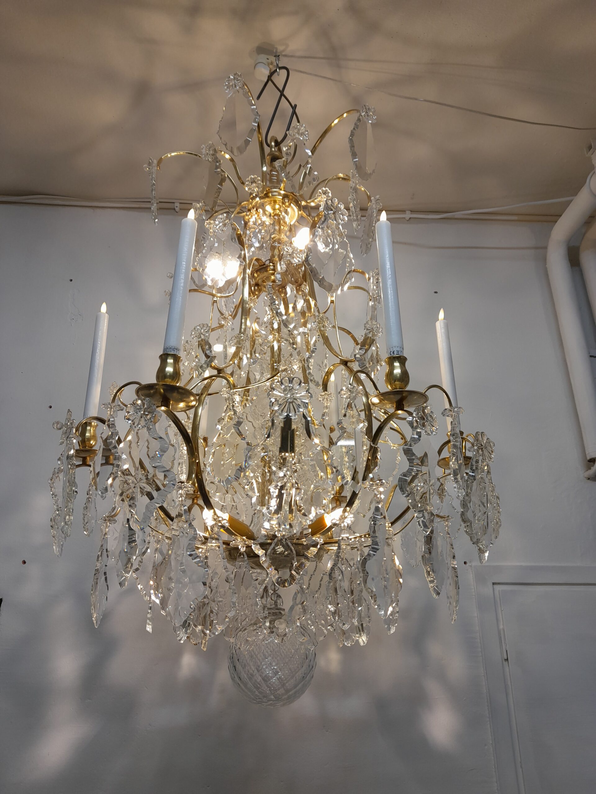 Stor antik ljuskrona i rokokostil från sekelskiftet 1800/1900 med 6 st armar för levande ljus.
